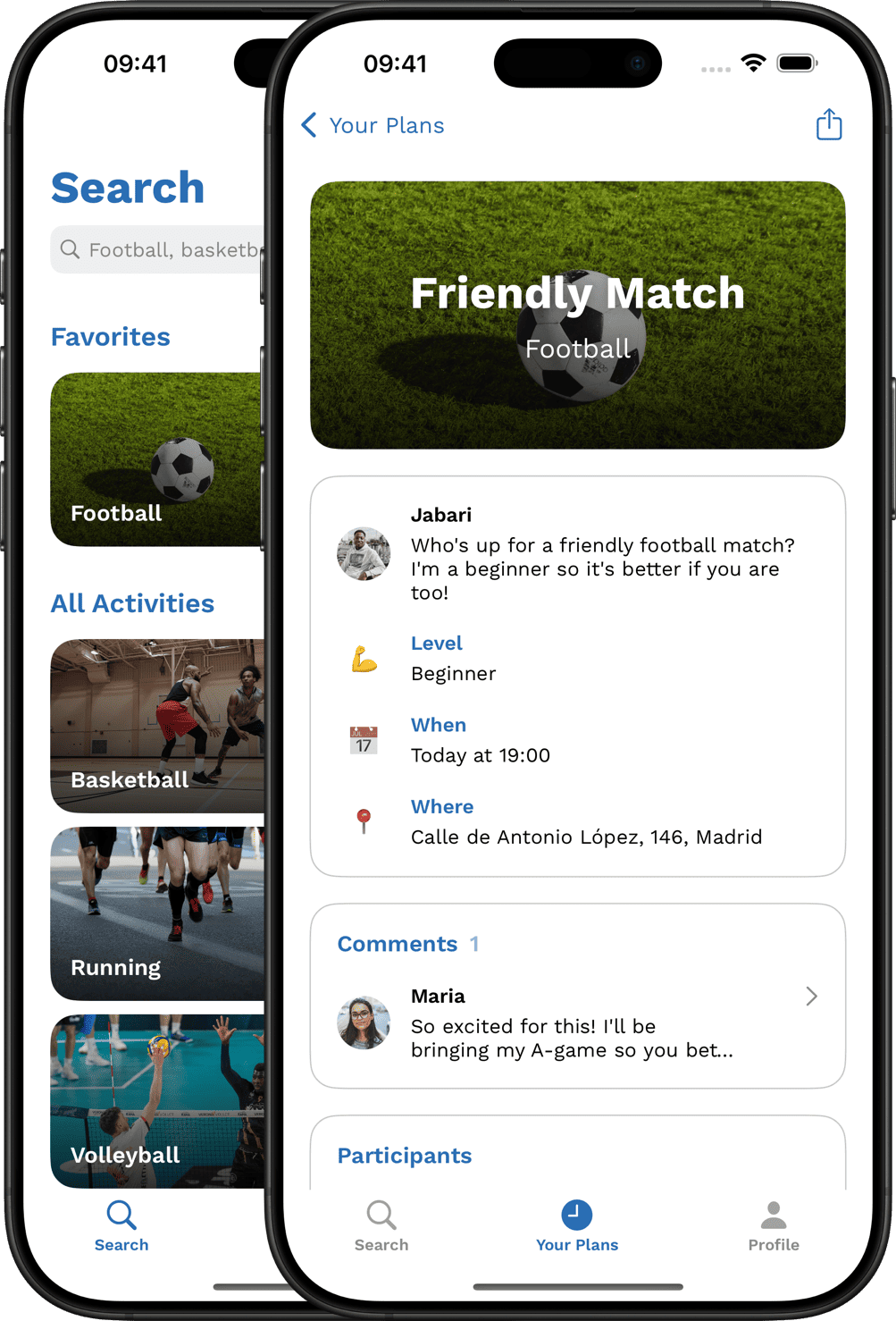 In Trainbuds you can join other people to practice sports. Get fit, motivate each other, and have fun.